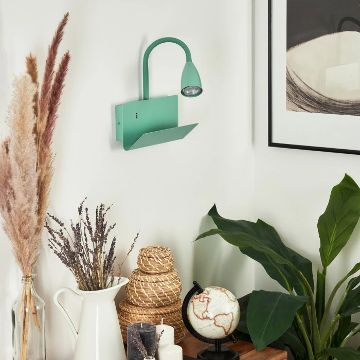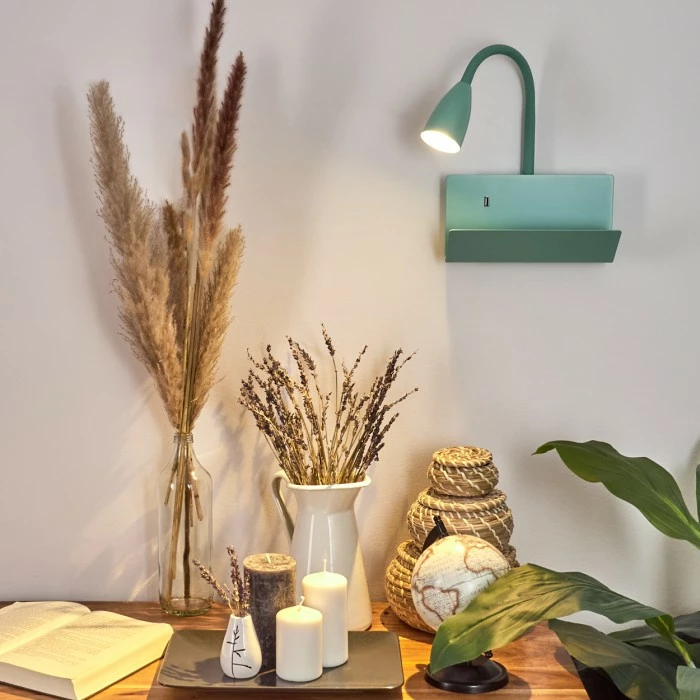 Zusätzlich verfügt diese Leuchte über eine Ablage und einen eingebauten USB-Ausgang.