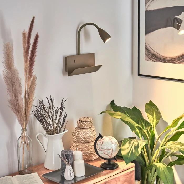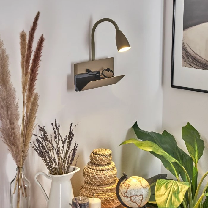 Zusätzlich verfügt diese Leuchte über eine Ablage und einen eingebauten USB-Ausgang.