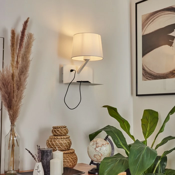 Zusätzlich verfügt diese Leuchte über eine Ablage und einen eingebauten USB-Ausgang.